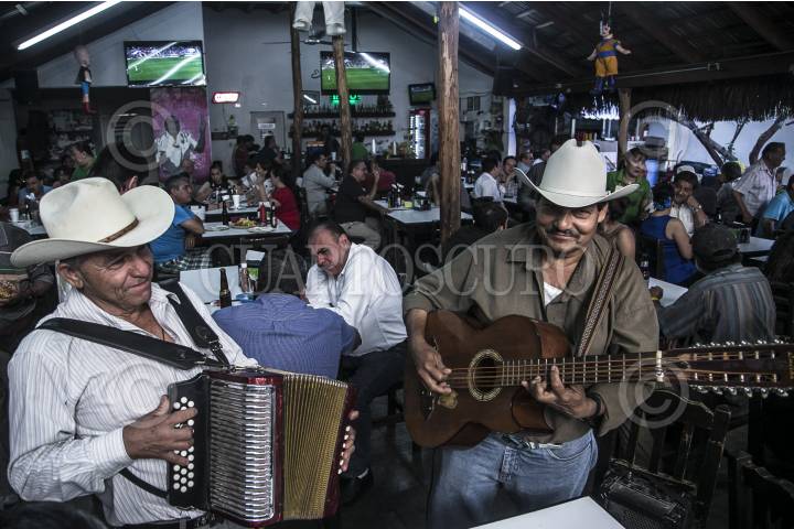 CULIACÁN, SINALOA, 21MAYO2016.- Músicos conocidos como ¨Chirrines¨ amenizan el ambiente con los tradicionales corridos norteños. La clientela de la cantina "El Guayabo" disfruta de la música además de un menú que consta de pollo frito y cervezas. FOTO: RASHIDE FRÍAS /CUARTOSCURO.COM