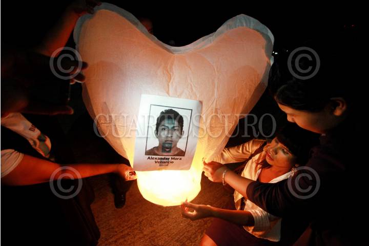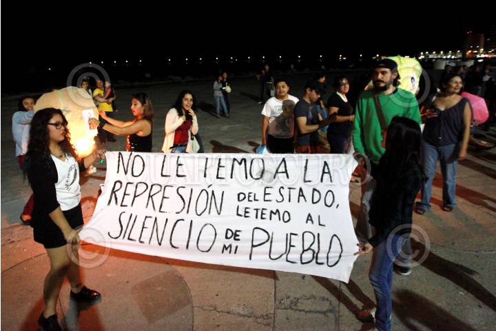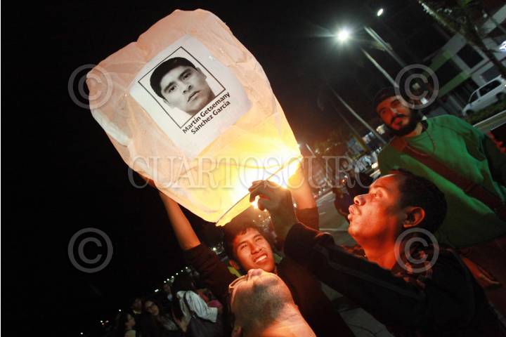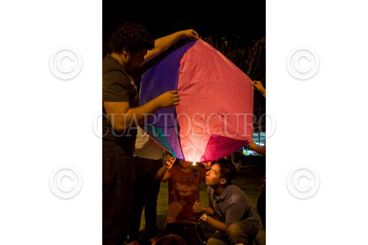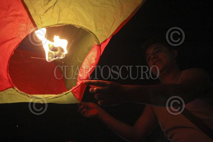 VERACRUZ, VERACRUZ, 12DICIEMBRE2014.- Jóvenes porteños, que pertenecen a agrupaciones estudiantiles y civiles, lanzaron globos de cantoya desde el bulevar Ávila Camacho para recordar a los primeros dos normalistas de Ayotzinapa que murieron durante un bloqueo en la autopista del Sol ocurrido hace tres años y por los 43 desaparecidos de Iguala, Guerrero. FOTO: FÉLIX MÁRQUEZ /CUARTOSCURO.COM
