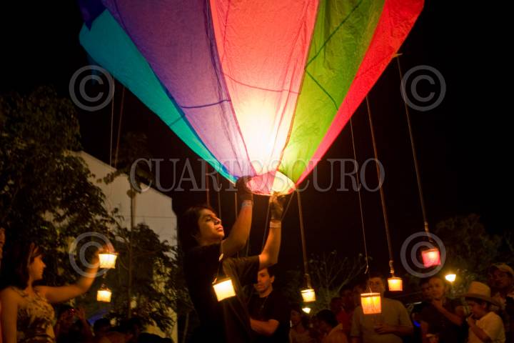 PAPANTLA, VERACRUZ, 19MARZO2012.- Algunas personas al termino de su taller de elaboracion de globos de cantoya, por la noche los dejaron ir al cielo para iluminarlo con sus colores el parque tematico de Tajin. FOTO: ENRIQUE ORDÓÑEZ /CUARTOSCURO.COM