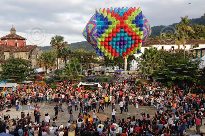 TUZAMAPAN DE GALEANA, PUEBLA, 17NOVIEMBRE2019.- Vecinos del municipio de Tuzamapan de Galeana participaron en la Feria del Globo 2019, la cual consiste en la elevación de globos artesanales, comúnmente conocidos como globos de cantoya, fabricados de papel china y pegamento blanco que alcanzan hasta los 20 metros de altura. FOTO: MIREYA NOVO /CUARTOSCURO.COM