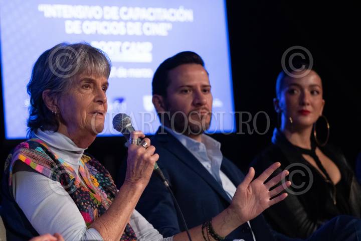 Carla Sánchez Armas, directora General de América Latina para la Motion Picture Association, durante la presentación del "Intensivo de Capacitación de Oficios de Cine Boot Camp", en el Faro Cosmos.
