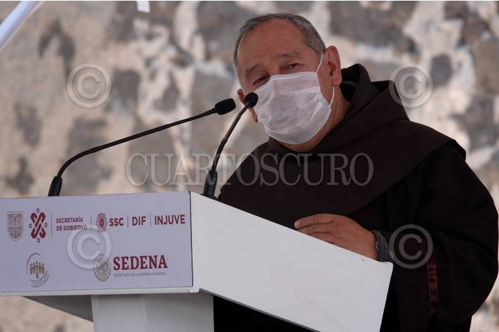 Fray Vidal Enríquez Barrientos, durante el programa "Si al desarme, si a la Paz", realizado en la Capilla de San Apóstol y Evangelista