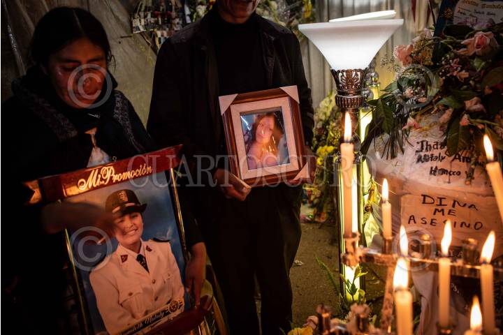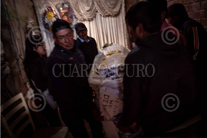 Los padres de Yamileth Nataly, la universitaria de 17 años que murió en los enfrentamientos del pasado nueve de enero, durante el velatorio de su hija.