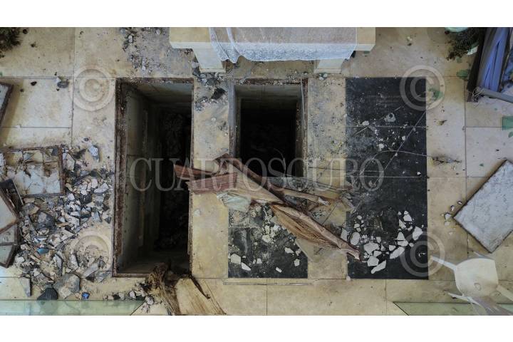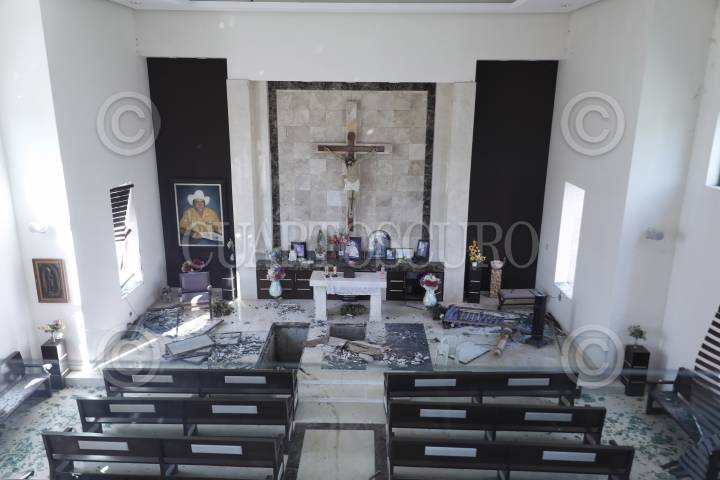 CULIACAN, SINALOA 29JULIO2024.- La capilla de la familia “Dámaso” fue profanada el pasado domingo 28 de julio en El Dorado, (sindicatura de Culiacán), Sinaloa y sustraídos los cuerpos de Dámaso López Garcia y Adolfo López Núñez. Los cuerpos faltantes dentro del mausoleo, se trataban del padre y hermano de Dámaso López Núñez, alias “El Licenciado”, presunto narcotraficante detenido en el 2016 en la Ciudad de México y extraditado a Estados Unidos, quien actualmente ha colaborado como testigo protegido en procesos judiciales en contra del “Chapo”. Su padre, Dámaso López Garcia, murió de un infarto en el año 2007, mientras que Adolfo López Núñez, hermano del narcotraficante fue asesinado el 2019 a las afueras de su domicilio. Este hecho vandálico, se registró justo unos días después de la captura de Ismael Zambada García, alias “El Mayo”, al mismo tiempo de la presunta entrega de Joaquín Guzmán López, hijo del “Chapo Guzmán”. FOTO: JOSÉ BETANZOS /CUARTOSCURO.COM