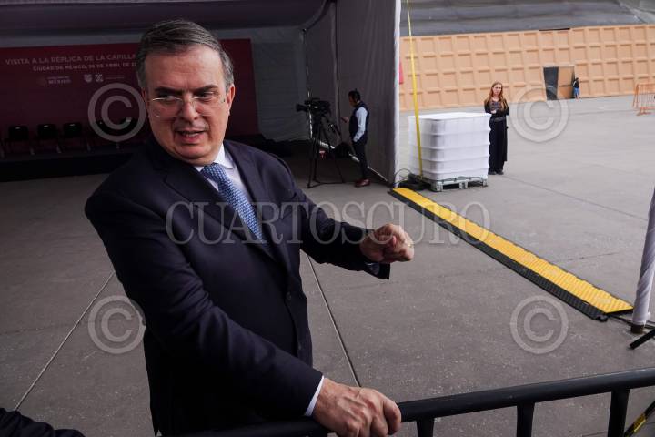 Marcelo Ebrard se acercó a conversar con los medios de comunicación previo al recorrido por la réplica de la Capilla Sixtina en el Zócalo