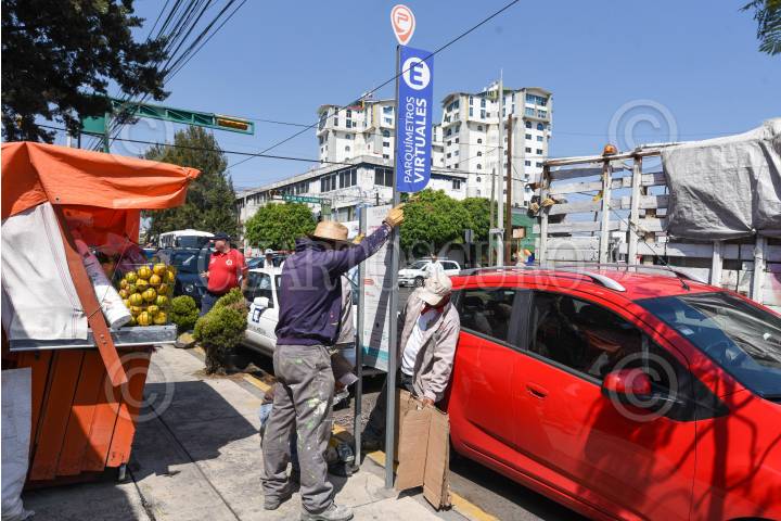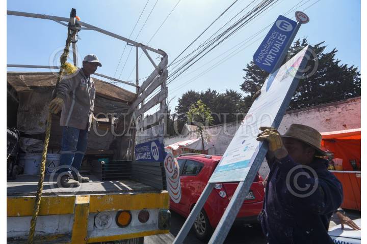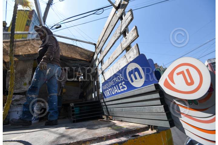 TOLUCA, ESTADO DE MÉXICO, 11JUNIO2024.- Continúan los trabajos de retiro de los parquímetros virtuales que fueron instalados en la ciudad de Toluca, después de haber sido cancelado en su totalidad este programa en los primeros días de 2024. FOTO: CRISANTA ESPINOSA AGUILAR /CUARTOSCURO.COM