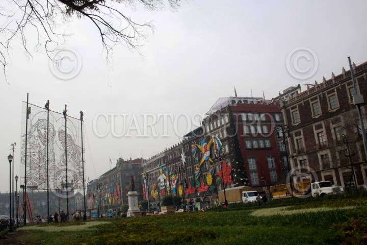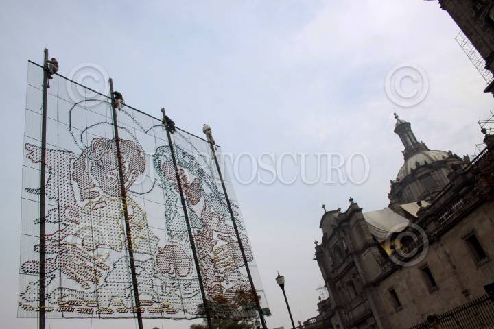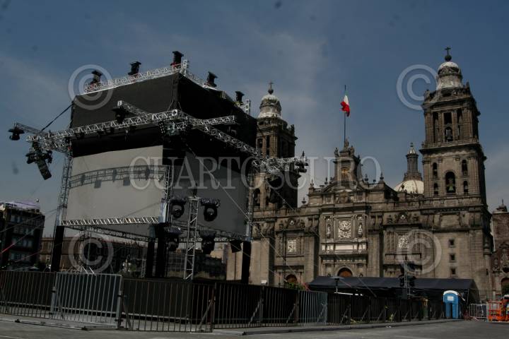 MÉXICO, D.F., 09NOVIEMBRE2010.- Continúan las obras de montaje del espectáculo de luces que se realizara en la plancha del zócalo capitalino. FOTO: ENRIQUE ORDÓÑEZ/CUARTOSCURO.COM
