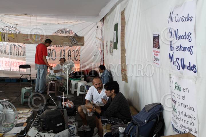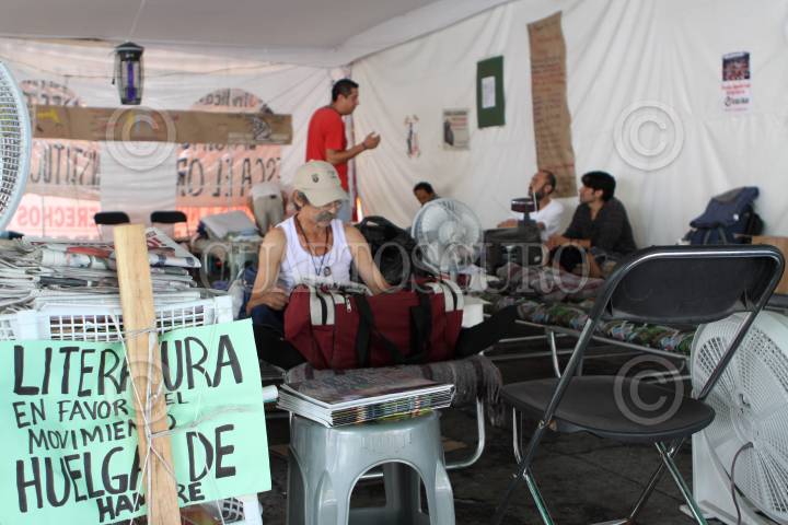 MÉXICO, D.F., 10JUNIO2010.- Continúa el plantón permanente y huelga de hambre que mantiene integrantes del Sindicato Mexicano de Electricistas (SME) en la plancha del Zócalo capitalino. FOTO: RODOLFO ANGULO/CUARTOSCURO.COM