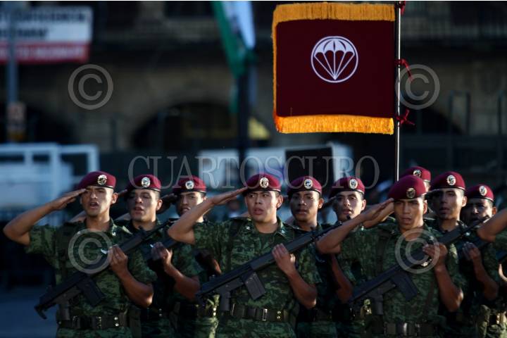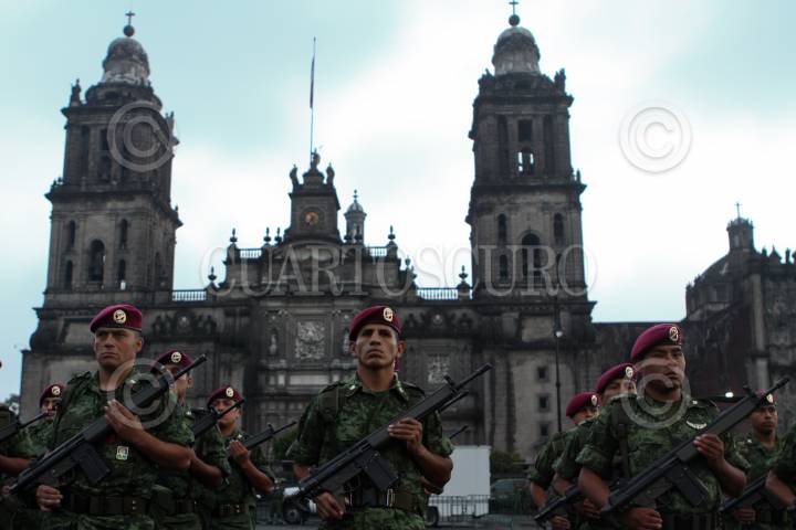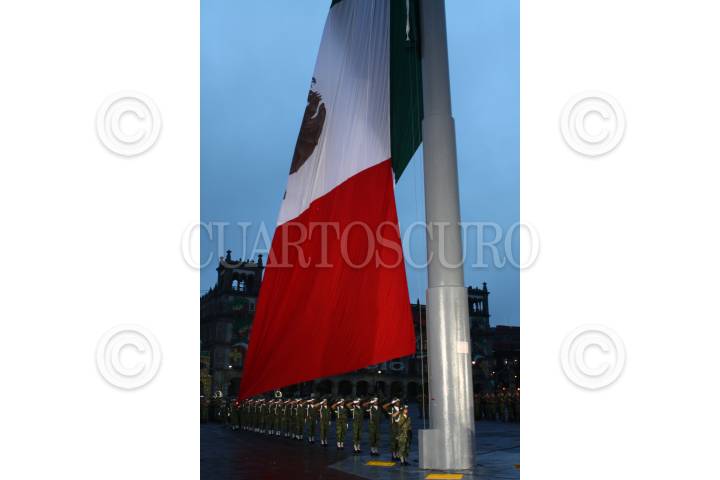 MÉXICO D.F., 19SEPTIEMBRE2010.- Elementos del Ejercito izaron la bandera a media asta durante el acto del izamiento de Bandera por motivo de los sismos de 1985 que se realizo en la explana del Zócalo capitalino. FOTO: RODOLFO ANGULO/CUARTOSCURO.COM