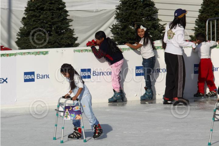MÉXICO, D.F., 09DICIEMBRE2010.- Decenas de niños y jóvenes se divierten en las pistas de hielo que el Gobierno de la ciudad de México colocó en el Zócalo capitalino. FOTO: RODOLFO ANGULO/CUARTOSCURO.COM