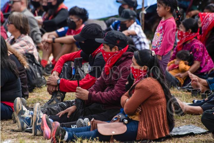 ALTAMIRANO, CHIAPAS, 05AGOSTO2025.- Se llevó a cabo el tercer día del Encuentro Resistencias y Rebeldías “Algunas partes del Mundo”, en el Semillero de la Comandanta Ramona. Jóvenes de distintas regiones zapatistas presentaron una obra de teatro en la que, a través de varias escenas, reflexionaron sobre errores cometidos dentro de la organización y cómo estos los han llevado a cuestionar las pirámides de poder del sistema capitalista. Al finalizar la obra, el comandante Moisés encabezó la destrucción simbólica de la “pirámide”, señalando que esta estructura destruye la organización comunitaria y violenta tanto a las personas como a la madre tierra. FOTO: ISABEL MATEOS HINOJOSA/CUARTOSCURO.COM