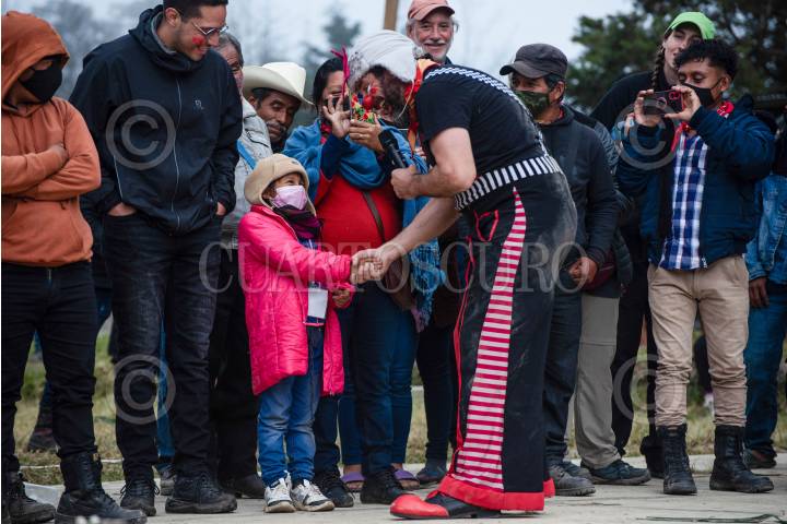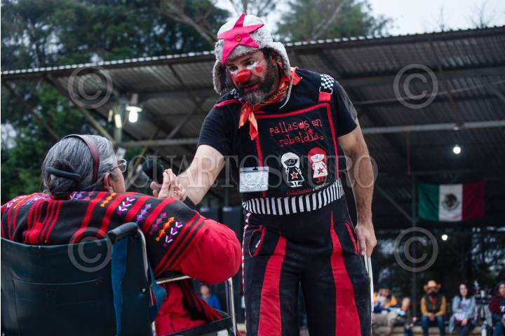 OVENTIC, CHIAPAS, 05ENERO2025.- Para finalizar el Encuentro Internacional de Rebeldías y Resistencias los jóvenes zapatistas realizaron una puesta escena en la que relataron que podrías pasar después de que el capitalismo acaba con todo y dentro de la obra los jóvenes proponen como echar a andar el "común", concepto que los zapatistas pusieron en marcha desde el año pasado. En este encuentro se tuvo la oportunidad de explicar a profundidad el bien común en mesas de diálogo, que fueron reforzadas con obras de teatro. También Payasos en Rebeldía, quienes asisten a diferentes zonas donde impera la violencia, tuvo una presentación para niños, niñas, jóvenes y adultos. FOTO: ISABEL MATEOS/CUARTOSCURO.COM