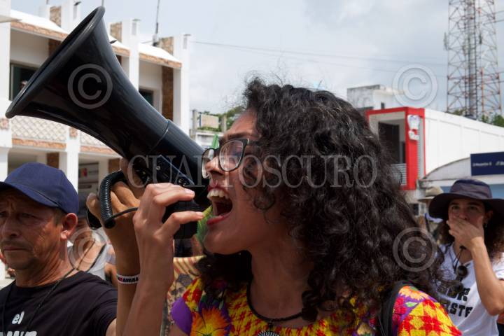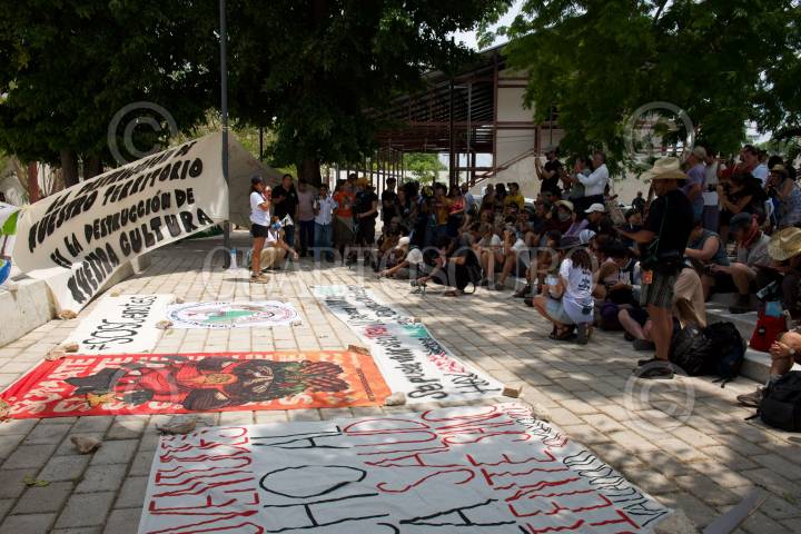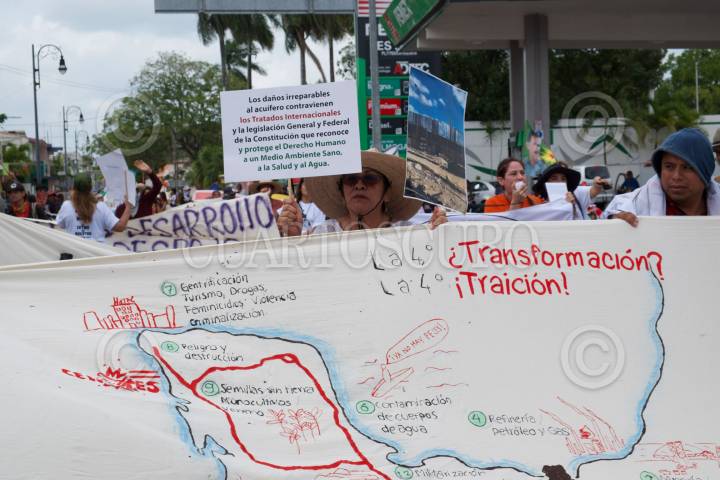 Durante la jornada del día la Caravana El Sur Resiste 2023 mostraron su rechazo al Tren Maya. el cual esta afectando los cenotes y destruyendo las áreas naturales, afirmaron.