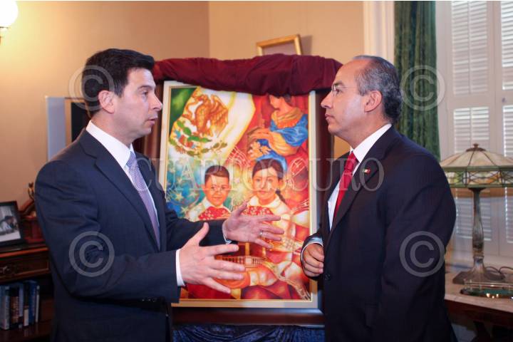 SACRAMENTO, CALIFORNIA., 13 FEBRERO2008.- El presidente Felipe Calderón durante la reunión con el sr. Fabian Nuñez presidente de la Asamblea Legislativa de California que tuvo lugar en el Capitolio estatal. FOTO: ALFREDO GUERRERO/CUARTOSCURO.COM