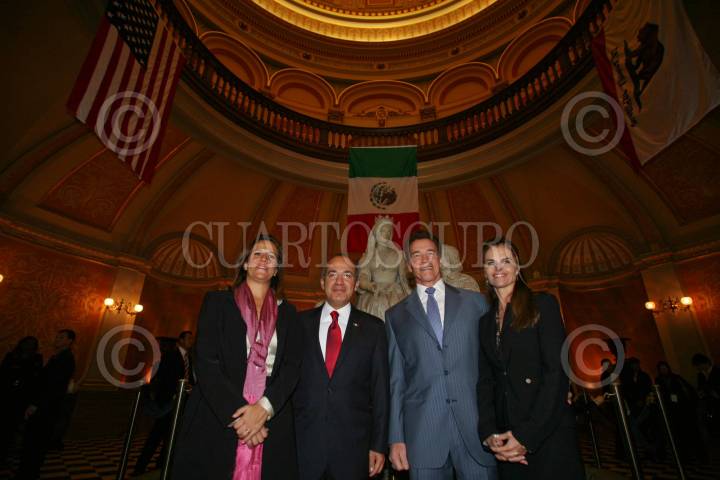 SACRAMENTO, CALIFORNIA., 13FEBRERO2008.- El presidente Felipe Calderón durante la reunión con el sr. Arnold Schwarzenegger que tuvo lugar lugar en el Capitolio estatal. FOTO: ALFREDO GUERRERO/CUARTOSCURO.COM