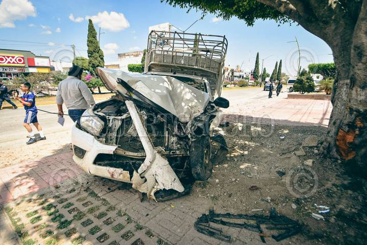 Vehículo involucrado en dos carambolas ocurridas esta mañana en el Paso Exprés de Cuernavaca.