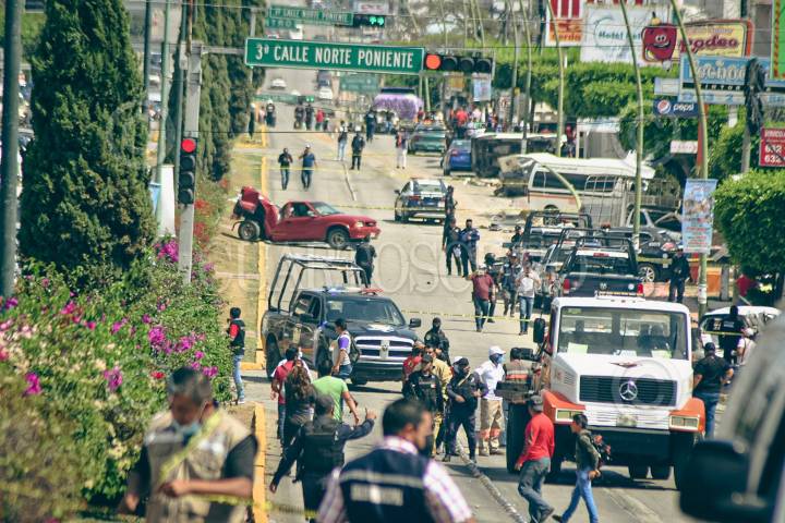 Soldados del Ejercito Mexicano llegan al Paso Exprés donde un tráiler impacto a varios vehículos.