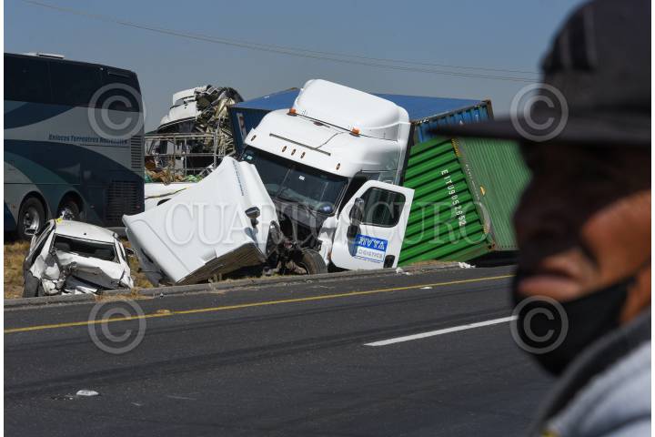 Un accidente registrado en el Libramiento Ruta de la Independencia Bicentenario Lerma se vieron involucrados 11 vehículos entre ellos camiones de pasajaeros, trailers, carros particulares y camionetas de carga, arrojando un saldo de 21 personas lesionadas y 2 muertos.