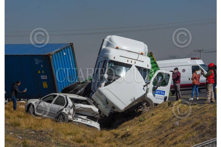 Dos accidentes en el paso exprés involucran a dos tráiler y nueve vehículos, solo se reportan cuatro heridos.