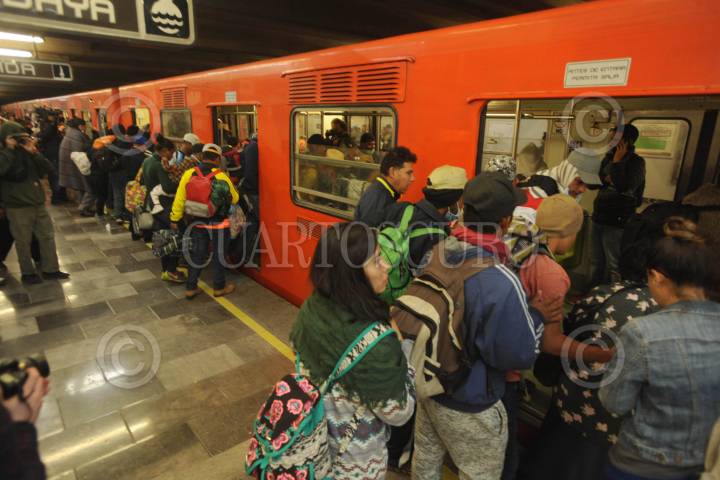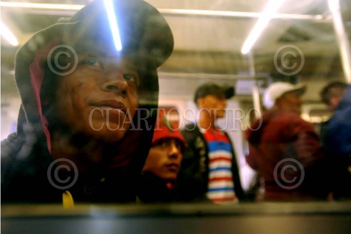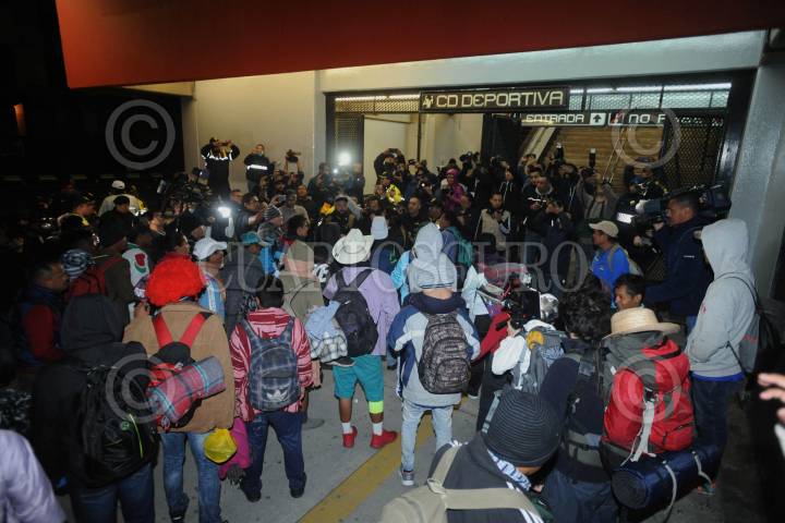CIUDAD DE MÉXICO., 09NOVIEMBRE2018.- Tras no ponerse de acuerdo los integrantes de la caravana de migrantes, un pequeño grupo de aproximadamente 400 centroamericanos, decidieron abandonar el albergue de Cd. Deportiva y continuar con su viaje hacia los Estado Unidos. Por este motivo se improvisó un operativo en la estación Cd Deportiva del Metro para poder trasladar a estas personas al Estado de México. FOTO: LUIS CARBAYO /CUARTOSCURO.COM