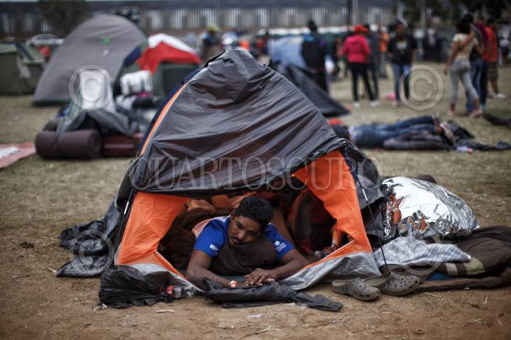 TIJUANA, BAJA CALIFORNIA, 19NOVIEMBRE2018.- Cientos de migrantes que participaron en la caravana proveniente de Honduras acampan en el albergue que se instaló en el deportivo Benito Juárez, en esta ciudad. FOTO: ISAAC ESQUIVEL /CUARTOSCURO.COM