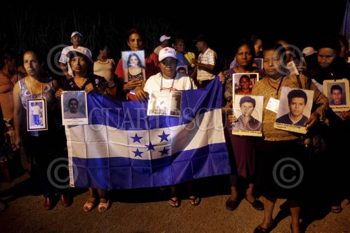TECÚN UMÁN, GUATEMALA, 18DICIEMBRE2015.- En el marco del Día Internacional del Migrante la Caravana de Madres Centroamericanas realizó una mitin a orillas del Río Suchiate para después trasladarse a Tecún Umán de lado Guatemala, esto como parte de la exigencia a los gobiernos de ambos países de respetar los derechos humanos de las personas que se trasladan de sus países de origen hacia Estados Unidos. Al pie de una cruz que se encuentra en el río las madres firmaron una carta que piensan entregársela al Papa Francisco durante su visita a México. FOTO: MOISÉS PABLO /CUARTOSCURO.COM