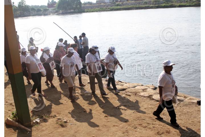 CIUDAD HIDALGO, CHIAPAS, 18DICIEMBRE2015.- En el marco del Día Internacional del Migrante la Caravana de Madres Centroamericanas realizó una mitin a orillas del Río Suchiate para después trasladarse a Tecún Umán de lado Guatemala, esto como parte de la exigencia a los gobiernos de ambos países de respetar los derechos humanos de las personas que se trasladan de sus países de origen hacia Estados Unidos. FOTO: MOISÉS PABLO /CUARTOSCURO.COM
