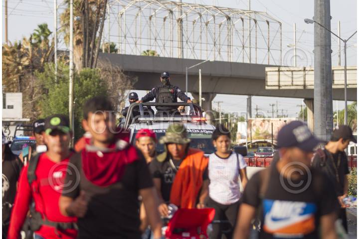 Cientos de migrantes que habían quedado varados en la central de autobuses de Monterrey, emprendieron una marcha hacia Saltillo, Coahuila, escoltados por patrullas de Fuerza Civil con la convicción de llegar a la frontera con Estados Unidos.