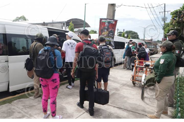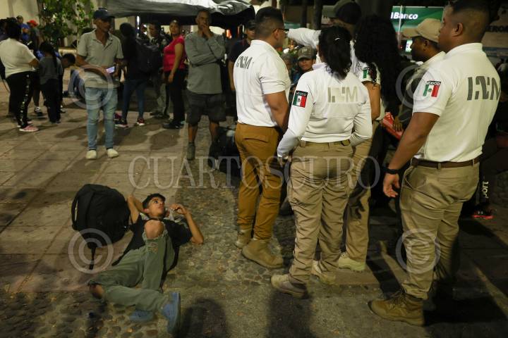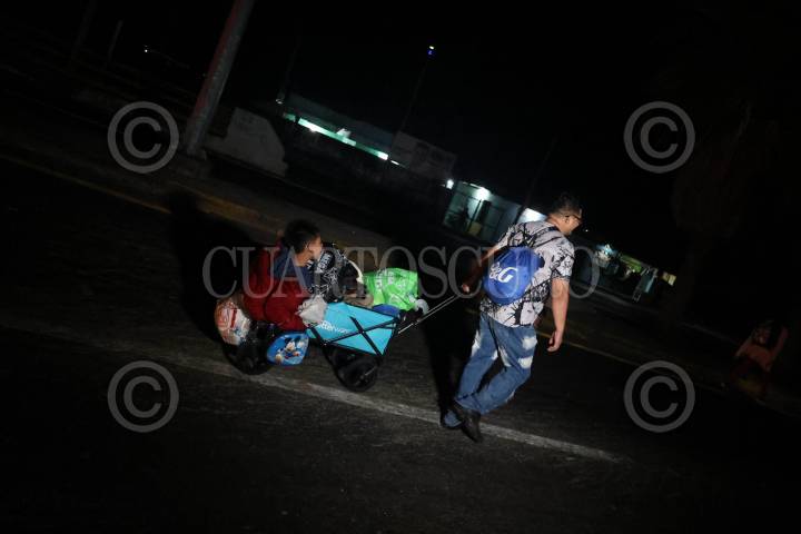 TAPACHULA, CHIAPAS, 02DICIEMBRE2024.- Integrantes del Instituto Nacional de Migración (INM) intentó detener una caravana de migrantes que partió en las primeras horas del día, no lograron su objetivo. Ya que muchas de las personas que buscan llegar a la frontera norte del país para de ahí internarse hacia Estados Unidos decidieron salir huyendo del Parque Bicentenario donde estaban concentrados. Algunos si tomaron la opción que les ofrecieron las autoridades migratorias y subieron a las camionetas para ser traslados a algún albergue. Muchos de los migrantes señalan que apresuran el paso para poder pedir asilo en Estados Unidos antes de la toma de protesta de Donald Trump, quien a sentenciado que su gobierno realizará deportaciones masivas. FOTO: DAMIÁN SÁNCHEZ/CUARTOSCURO.COM