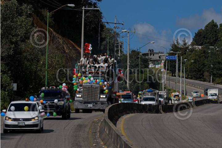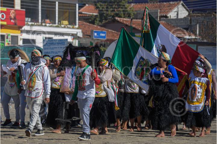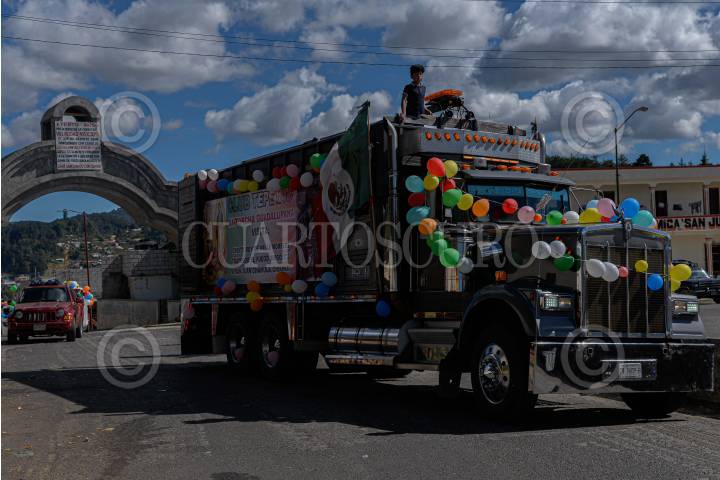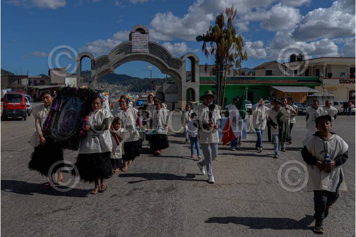Cientos de indígenas de San Juan Chamula comenzaron a peregrinar en largas caravanas de autobuses o camiones de carga o a pie para partir de sus localidades para viajar en honor a la Virgen de Guadalupe