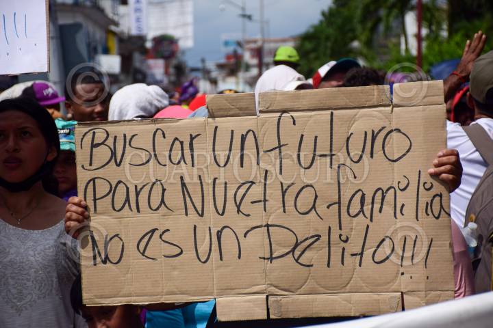 TAPACHULA, CHIAPAS, 02ENERO2025.- Alrededor de 2,000 migrantes de diversas nacionalidades se reunieron en el Parque Bicentenario con la intención de dirigirse hacia la frontera norte. La mayoría de estas personas habían solicitado una cita a través de la aplicación CPB ONE, pero sus solicitudes fueron rechazadas lo que generó frustración entre los migrantes por lo que optaron irse en caravana. FOTO: DAMIÁN SÁNCHEZ/CUARTOSCURO.COM