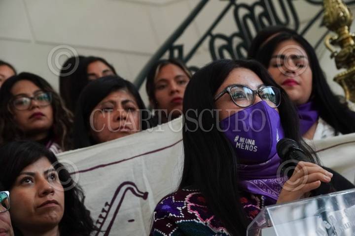 CIUDAD DE MÉXICO, 08FEBRERO2024.- La activista Elisa Xolalpa, víctima de ataque con ácido, durante la conferencia en el Congreso de la Ciudad de México tras la aprobación de la llamada "Ley Malena", promovida por la diputada Marcela Fuentes Castillo. Este cambio jurídico integra los ataques con ácido a mujeres como tentativa de feminicidio y será castigado con hasta 12 años de cárcel. FOTO: GALO CAÑAS/CUARTOSCURO.COM