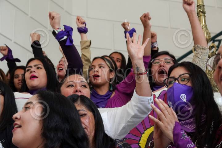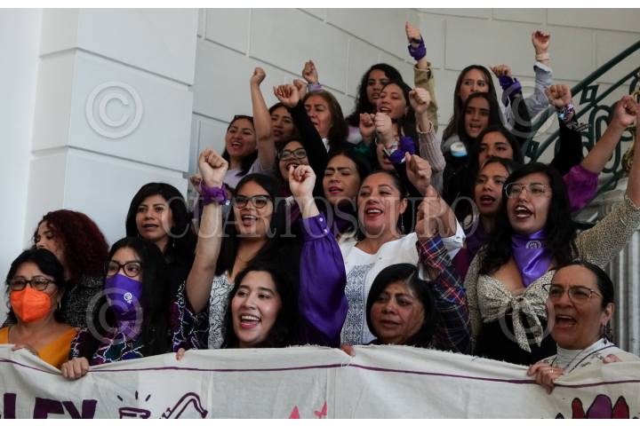 CIUDAD DE MÉXICO, 08FEBRERO2024.- Las activistas Maria Elena Ríos y Elisa Xolalpa, víctimas de ataques con ácido, celebraron en el Congreso de la Ciudad de México la aprobación de la llamada "Ley Malena", promovida por la diputada Marcela Fuentes Castillo. Este cambio jurídico integra los ataques con ácido a mujeres como tentativa de feminicidio y será castigado con hasta 12 años de cárcel. FOTO: GALO CAÑAS/CUARTOSCURO.COM