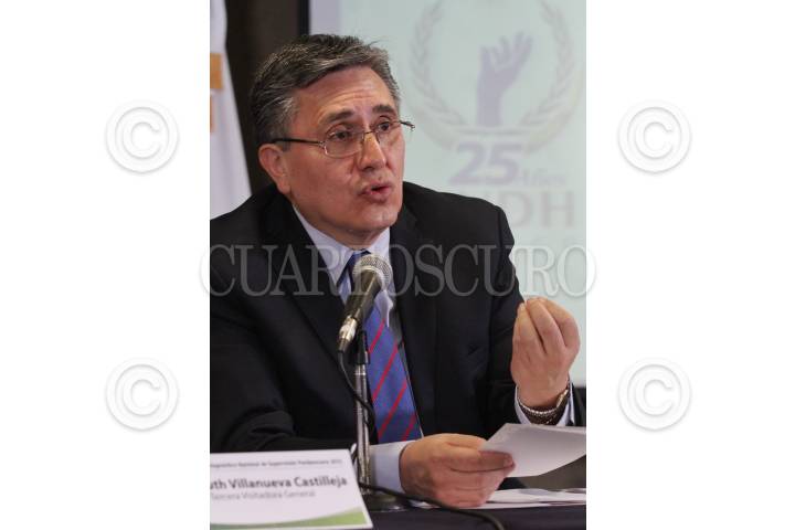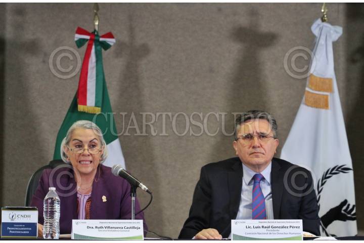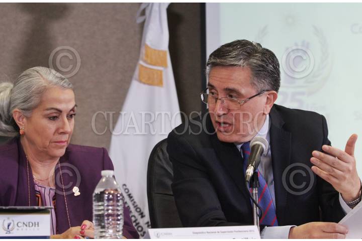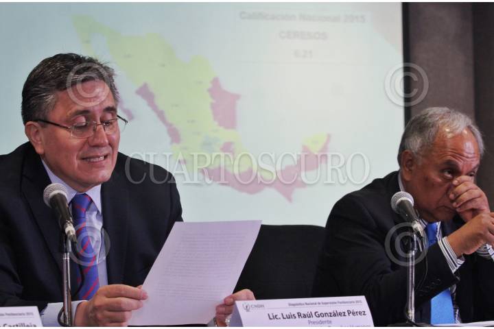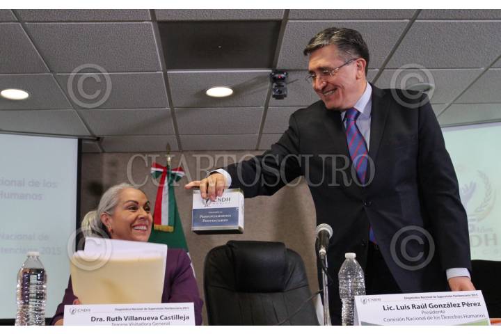 CIUDAD DE MÉXICO, 12ABRIL2016.- Luis Raúl González Pérez, presidente de la Comisión Nacional de los Derechos Humanos (CNDH), y la Dra. Ruth Villanueva, tercera visitadora general, presentaron el Diagnóstico Nacional de Supervisión Penitenciaria 2015 en el que detallaron las recomendaciones emitidas durante ese año en cuestión de derechos humanos en los Centros de Readaptación Social y penales. FOTO: MARÍA JOSÉ MARTÍNEZ /CUARTOSCURO.COM