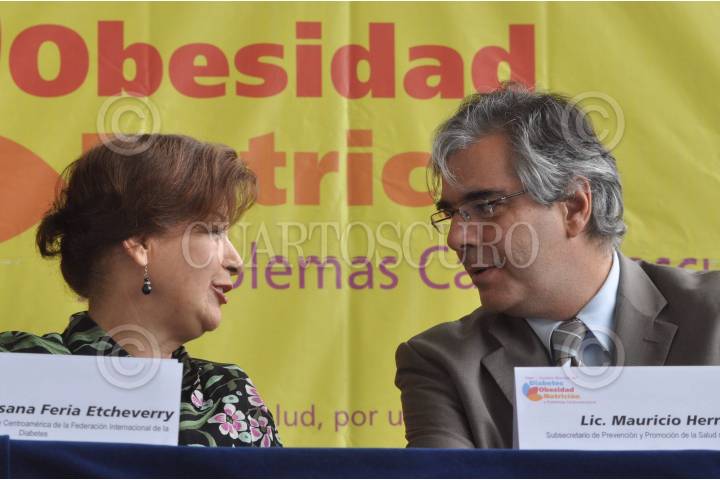 MÉXICO, D.F., 19AGOSTO2009.- Escribana Susana Feria y Mauricio Hernández, subsecretario de Prevención y Promoción de la Salud, durante la inauguración de la Expo Cumbre Mundial de Diabetes Obesidad, Nutrición y Problemas Cardiovasculares, esto se dio en el Centro Banamex. FOTO: EDUARDO MORALES/CUARTOSCURO.COM