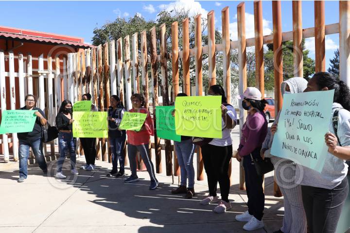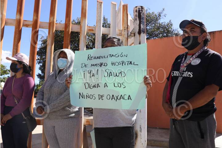 SAN BARTOLO COYOTEPEC, OAXACA, 13ENERO2025.- Trabajadores del Hospital de la Niñez Oaxaqueña “Doctor Guillermo Zárate Mijangos”, ubicado en el municipio de San Bartolo Coyotepec a 15 kilómetros de la capital de Oaxaca, pararon labores para denunciar que el centro médico infantil carece de áreas habilitadas, quirófanos, equipo y medicamentos para dar atención adecuada. El pasado 20 de junio de 2024 el hospital sufrió una inundación devastadora, a 7 meses y reabierto el pasado 10 de enero por el gobierno estatal, los trabajos de rehabilitación en áreas prioritarias como quirófanos, oncología, salas de terapia intensiva, unidad de quemados, entre otras no han sido concluidos, por lo que al decir de los trabajadores no es posible ofrecer un servicio de calidad. Además denunciaron que hay incertidumbre sobre quién manejará la operatividad del nosocomio, pues con la entrada en vigor del sistema IMSS-Bienestar en Oaxaca, el ente sigue siendo un Organismo Público Descentralizado dependiente del estado, pero que recibe también recursos federales. A la par, madres y padres de pacientes infantiles oncológicos se manifestaron al exterior para exigir certeza en la atención de sus hijos, pues el área de oncología es una de las que aún está en reconstrucción y los pacientes están siendo atendidos en un área habilitada para otros tratamientos. FOTO: CAROLINA JIMÉNEZ/CUARTOSCURO.COM