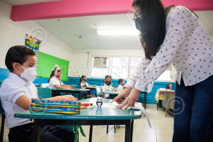 Alumnos de la primaria Hermanos Flores Magón retomaron clases presenciales tras año y medio que se suspendieron por la pandemia de Covid-19.