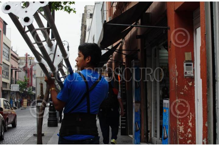 Cargador chambea en medio del intenso calor en las calles de Eje Central.
