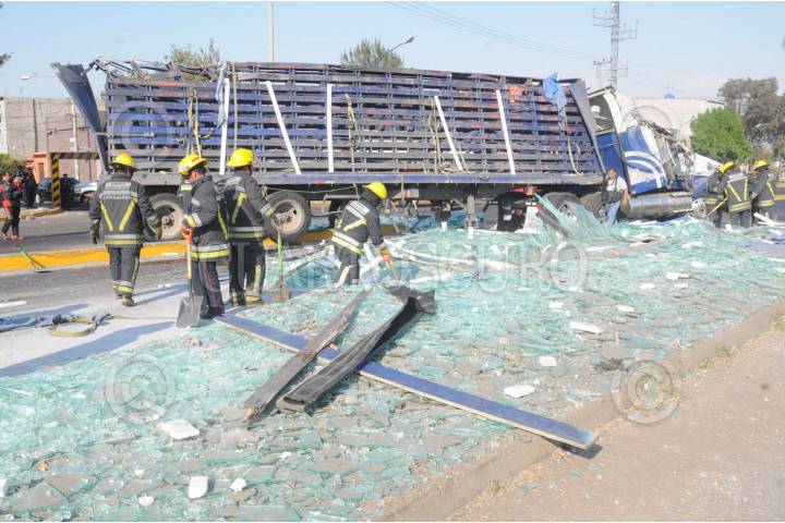 MÉXICO, D.F., 28DICIEMBRE2008.-Un triler volcó al conducir en exceso de velocidad dejando su cargamento de Vidrio regado en el pavimento de la Avenida 602 al cruce con la Avenida 613 de la colonia San Juan de Aragon en la Delegacion Gustavo A. Madero FOTO: JULIETA MORA/CUARTOSCURO.COM