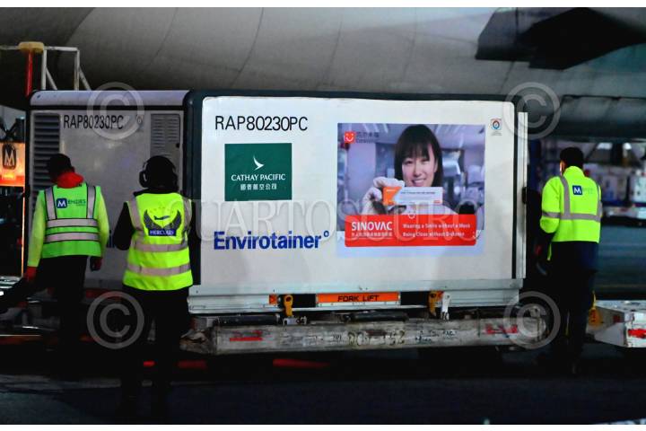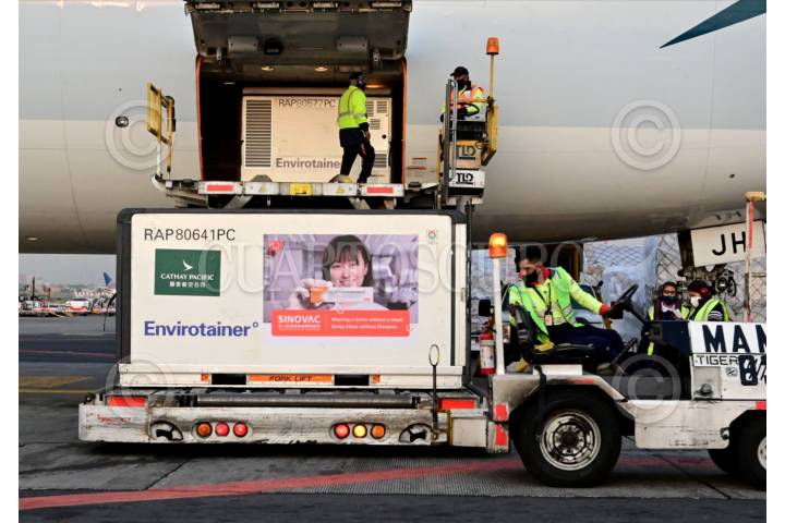 México recibió dos millones de vacunas envasadas contra COVID-19 del laboratorio Sinovac Life Sciences Co., Ltd. El cargamento enviado desde China arribó esta madrugada a la terminal 1 del Aeropuerto Internacional de la Ciudad de México (AICM) “Benito Juárez".