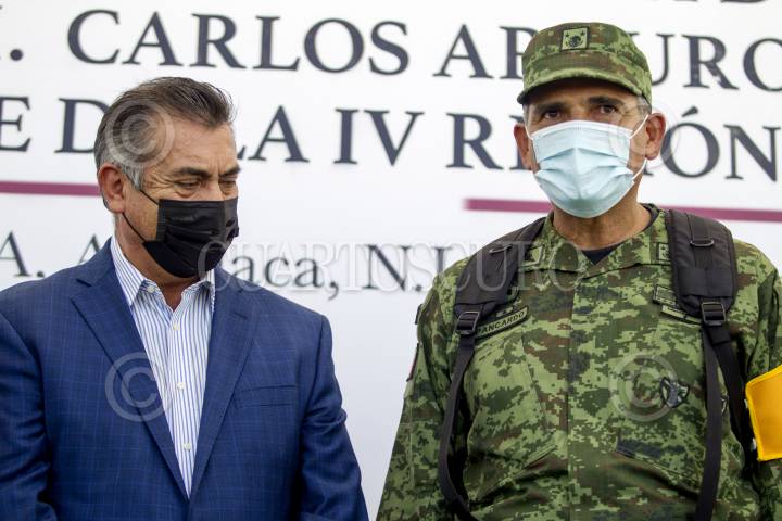 APODACA, NUEVO LEÓN, 01SEPTIEMBRE2020.- Dentro de las instalaciones del VII Zona Mlitar, se llevó a cabo la toma de posesión y protesta de bandera al General de Brigada D.E.M. Carlos Arturo Pancardo Escudero Comandante de la IV Región Militar, la cual incluye los estados de Nuevo León, Tamaulipas y San Luis Potosí. FOTO: GABRIELA PÉREZ MONTIEL / CUARTOSCURO.COM