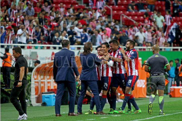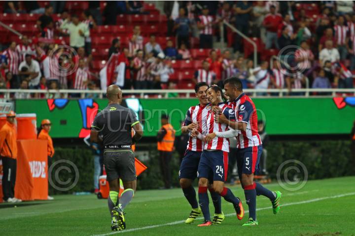 ZAPOPAN, JALISCO, 10SEPTIEMBRE2016. Carlos Cisneros, jugador de Chivas celebra su anotación, durante el juego correspondiente a la Jornada 8 del Torneo Apertura 2016 de la Liga MX, en donde se enfrentan las Chivas de Guadalajara y los Jaguares de Chiapas, en juego que se lleva a cabo en el estadio Chivas y en donde el marcador hasta el momento es de 2-0 a favor del equipo de casa. FOTO : FERNANDO CARRANZA GARCIA / CUARTOSCURO.COM