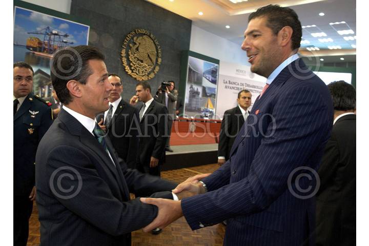 MÉXICO, D.F., 11JUNIO2013.- El presidente Enrique Peña Nieto y Carlos Hank Gonzalez director de Grupo Financiero Interacciones al termino de la presentación "La Banca de Desarrollo: avances y perspectivas", realizado en la residencia oficial de los pinos. FOTO: CUARTOSCURO.COM