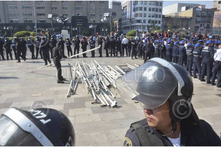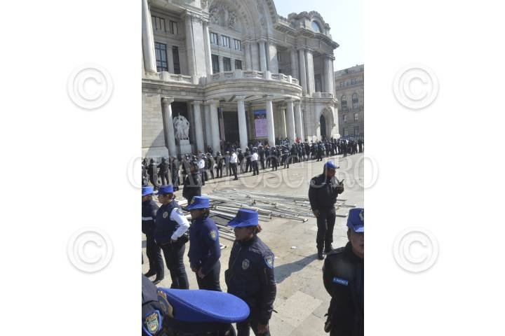 CIUDAD DE MÉXICO, 11MARZO2017.- Elementos policiacos impidieron la colocación de una carpa de artesanos que predendían instalar una feria en la explanada del Palacio de Bellas Artes. FOTO: ARMANDO MONROY /CUARTOSCURO.COM