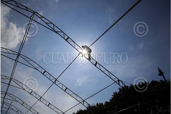 CUERNAVACA, MORELOS, 25SEPTIEMBRE2018.- Un hombre trabaja en una estructura que servirá de carpa para la ceremonia de toma de posesión del gobernador electo Cuauhtémoc Blanco, la cual se llevará a cabo el próximo primero de octubre. FOTO: MARGARITO PÉREZ RETANA / CUARTOSCURO.COM