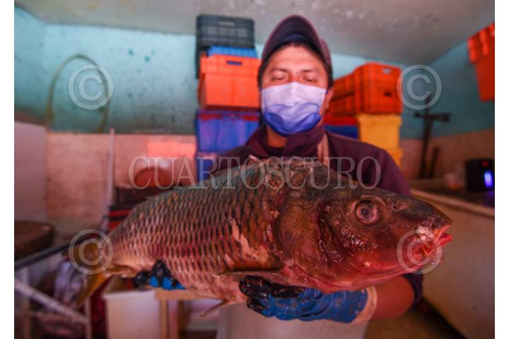 Mojarra, charales y carpa son los más comprados a un dia del inicio de la Cuaresma, por ser pescados más económicos, en San Luis Mextepec en el municipio de Zinacantepec se puede encontrar una gran variedad de pescados, los comerciantes esperan mejorar sus ventas.