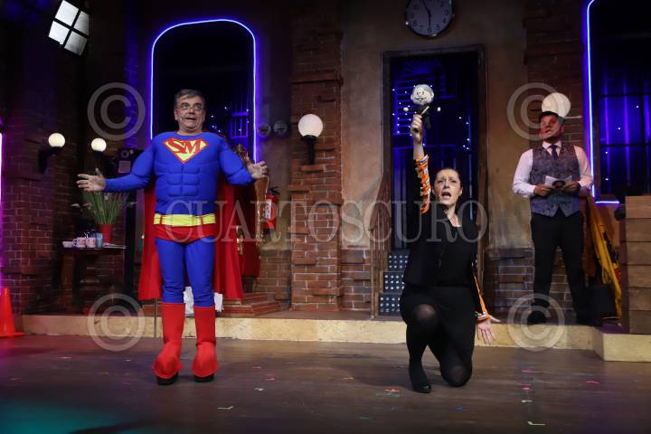 Alex Guzmán, Marialicia Delgado y Pierre Angelo durante la conferencia de prensa de la parodia política “Tenemos otros dato”, en el Teatro Virginia Fábregas.