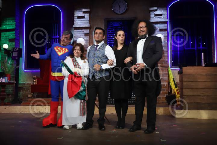 Pierre Angelo, Marialicia Delgado, Alex Guzmán, Baldomero Jiménez, y Adriana Moles durante la conferencia de prensa de la parodia política “Tenemos otros dato”, en el Teatro Virginia Fábregas.