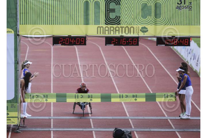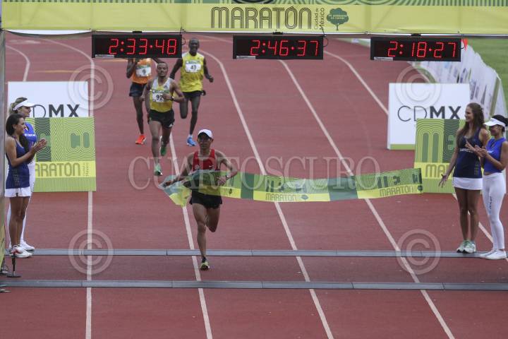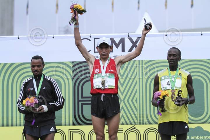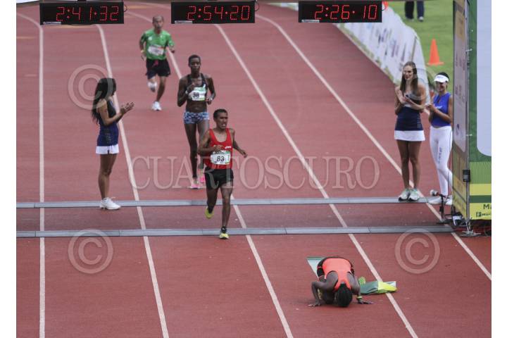 MÉXICO, D.F., 31AGOSTO2014.- El peruano Raúl Pacheco consiguió por segundo año consecutivo el primera lugar en el Maratón de la CIudad de México, con un tiempo de 2 horas,18 minutos y 25 segundos; por delante del etiope Abrha Milaw y del keniano Kenneth Mungara. En la rama femenil, la etíope Shewarge Amare consiguió el primer lugar con un tiempo de 2h,41m,21s; en segundo lugar la burundesa Diane Nukuti Jahson y tercero la peruana Gladys Tejeda. FOTO: ADOLFO VLADIMIR /CUARTOSCURO.COM