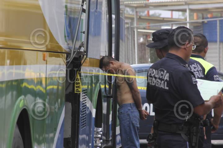 ECATEPEC, ESTADO DE MÉXICO, 12JUNIO2016.- Dos delincuentes muertos y un detenido fue el saldo de un intento de asalto abordo de un autobús de la linea ODT sobre la carretera México-Pachuca en el kilómetro 21 de este municipio. Uno de los delincuentes murió a causa de un disparo que accidentalmente realizó su cómplice, situación que los pasajeros aprovecharon para linchar a uno de ellos. FOTO: DIEGO REYES /CUARTOSCURO.COM
